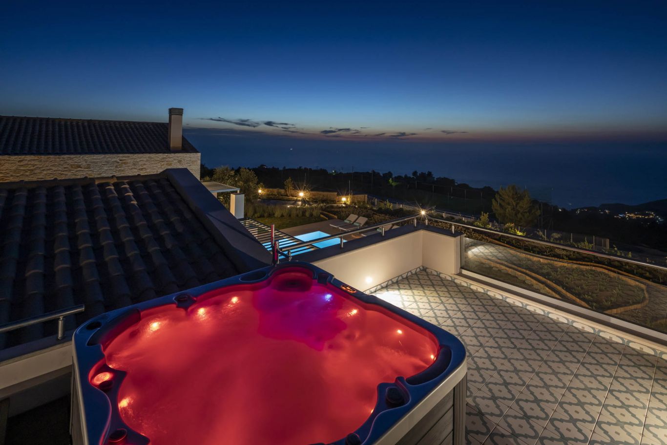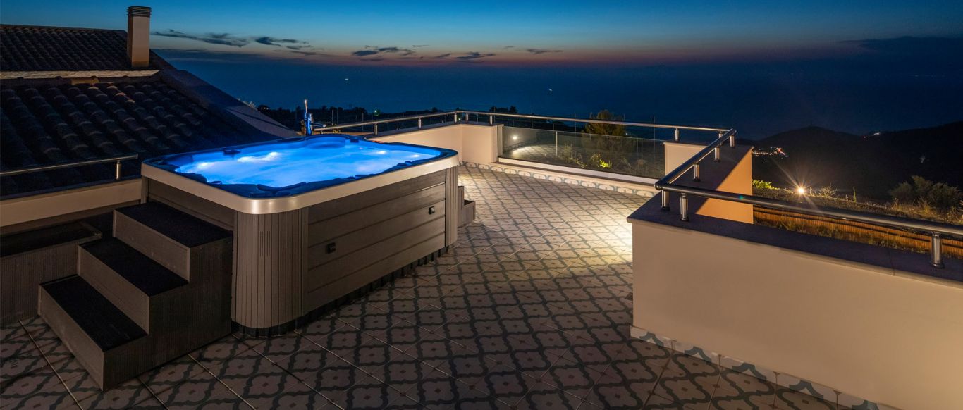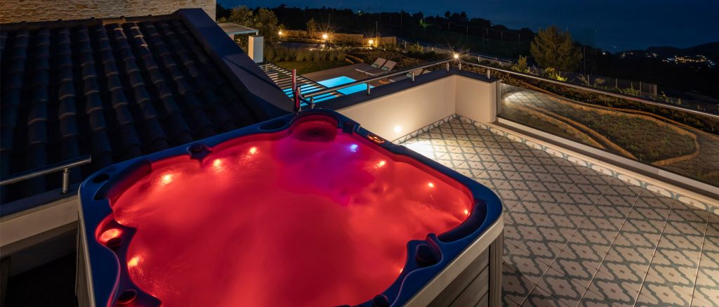 Located on the rooftop of the larger villa under a splendid wooden pergola, the hot-tub invites you to indulge in moments of pure relaxation, lounging and gazing at the shimmering Ionian sea and the picturesque inland landscape. In the complete privacy of Alessia Villa estate, you will revel in an exquisite hot-tub experience, in the most tranquil atmosphere and serene setting.